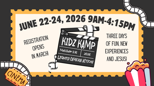 Kidz Kamp is a day camp for kids going into 1st-5th grade. Kids will experience 15 different classes and activities to learn new skills, make new friends and hear about Jesus. Our guest speaker this year is Boston Bachert!