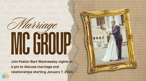 Come discuss marriage and relationships with pastor Bart & others. Take some time to invest in your marriage!