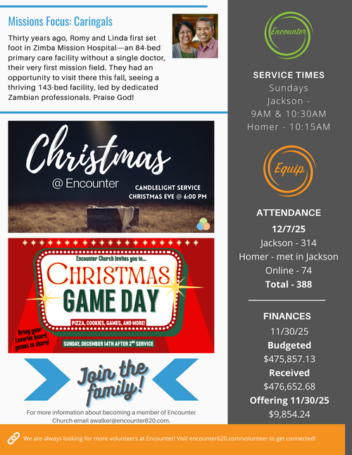 Thank you for your interest in Encounter Church. If you would like to receive email newsletters to keep up with everything going on at Encounter Church, please fill out the form below to be added to our email list.